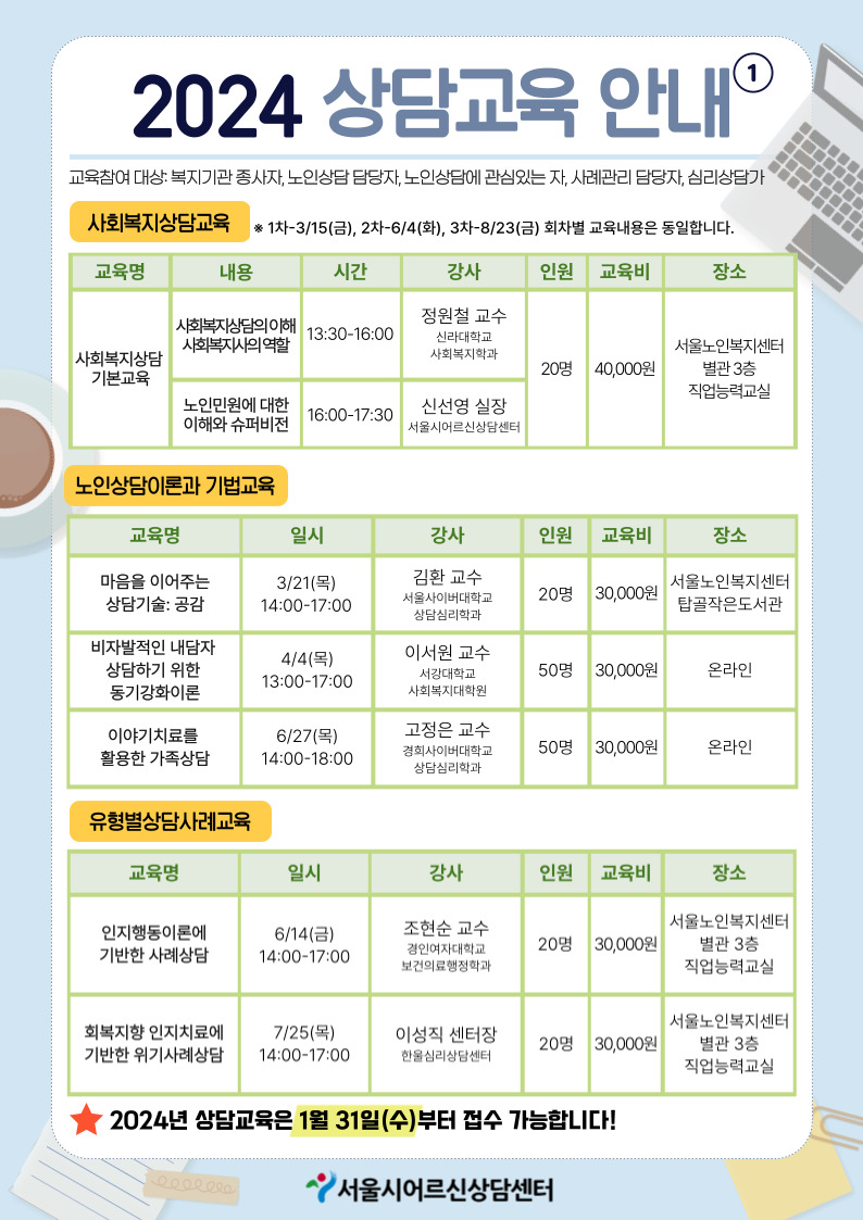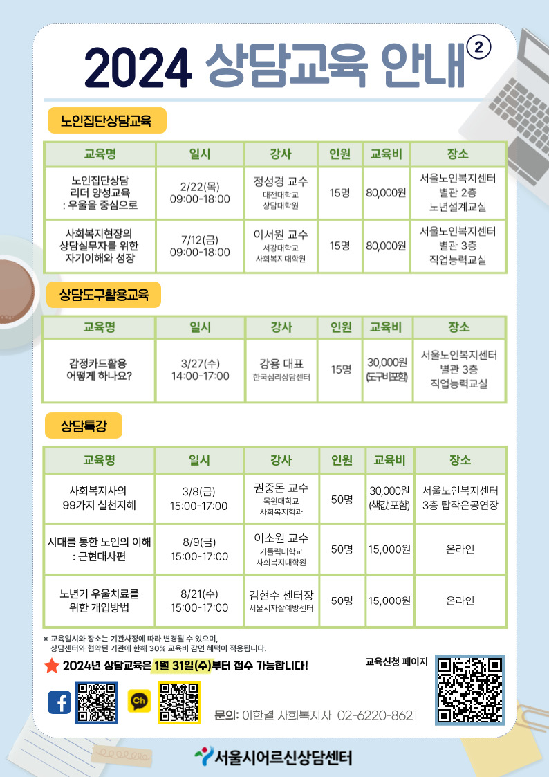 [상담교육] 2024년 서울시어르신상담센터 상담교육 참여자 모집 안내